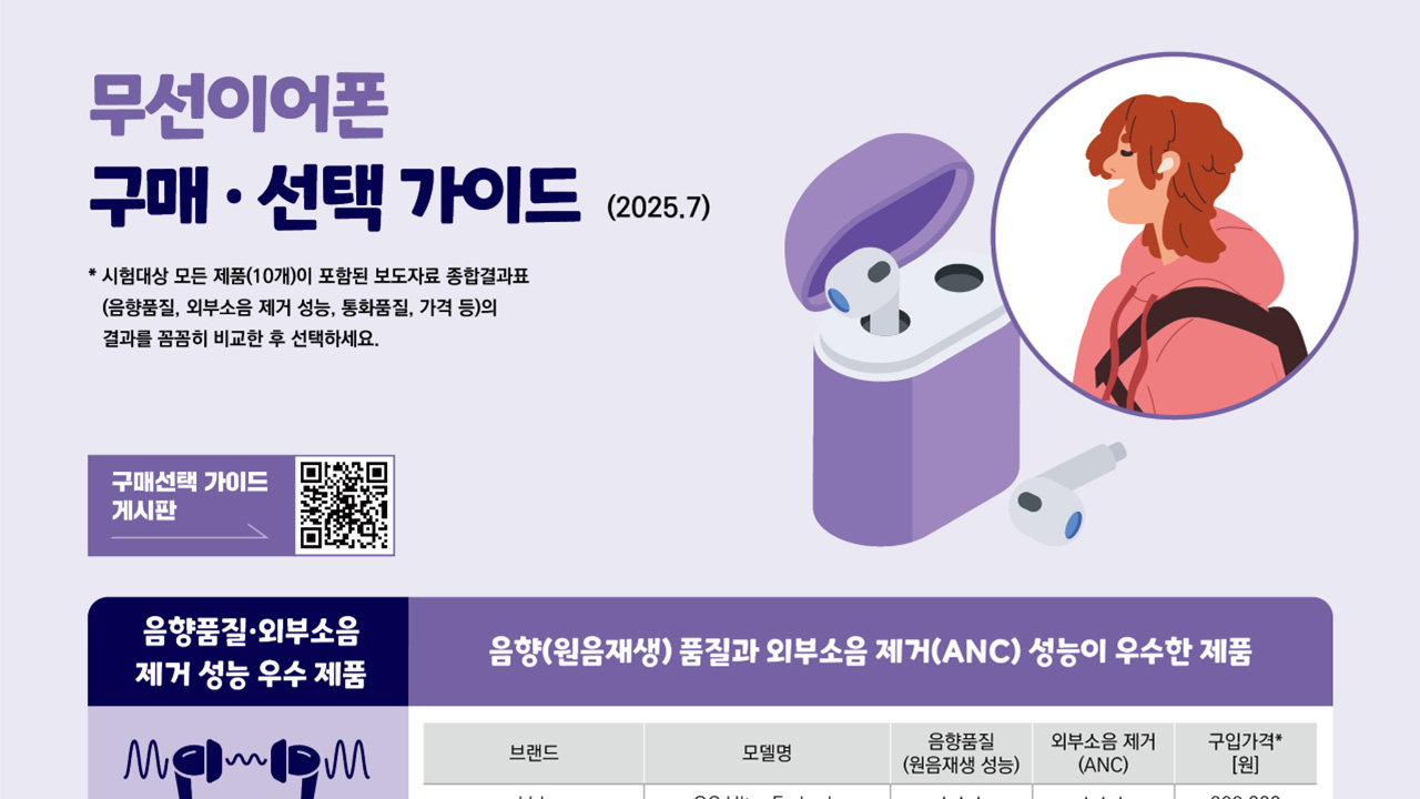 자료 제공 한국소비자원시중에 판매 중인 무선이어폰의 성능과 가격이 제품 간 차이가 있고, 일부 제품은 안전기준을 초과해 소비자 주의가 필요한 것으로 나타났습니다.한국소비자원이 시중에 유통 중인 무선이어폰 10개 제품의 품질과 안전성 등을 시험 평가한 결과 원음을 왜곡하지 않고 재생하는지를 나타내는 음향 품...