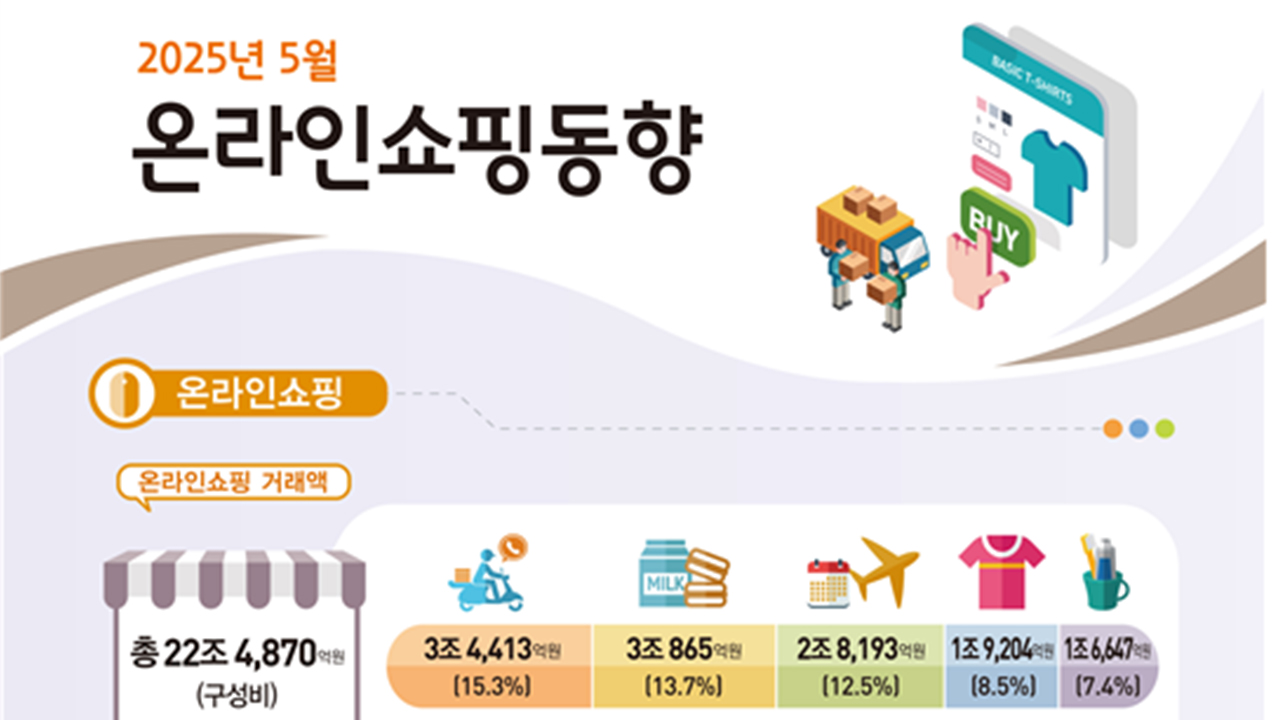 5월 온라인 쇼핑 거래액 22.5조 원···음식 서비스 14.2%↑