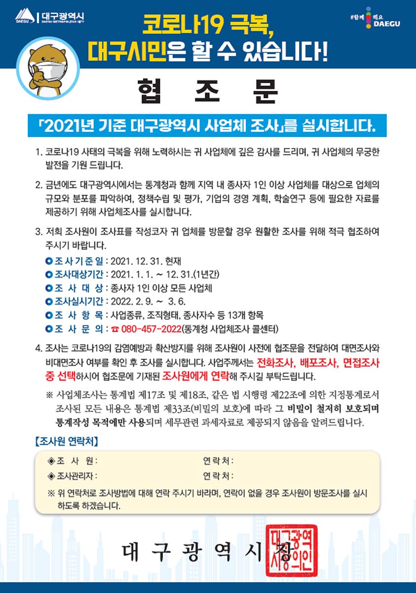 대구시, 산업 현황 파악 위한 사업체 조사 2월 9일부터