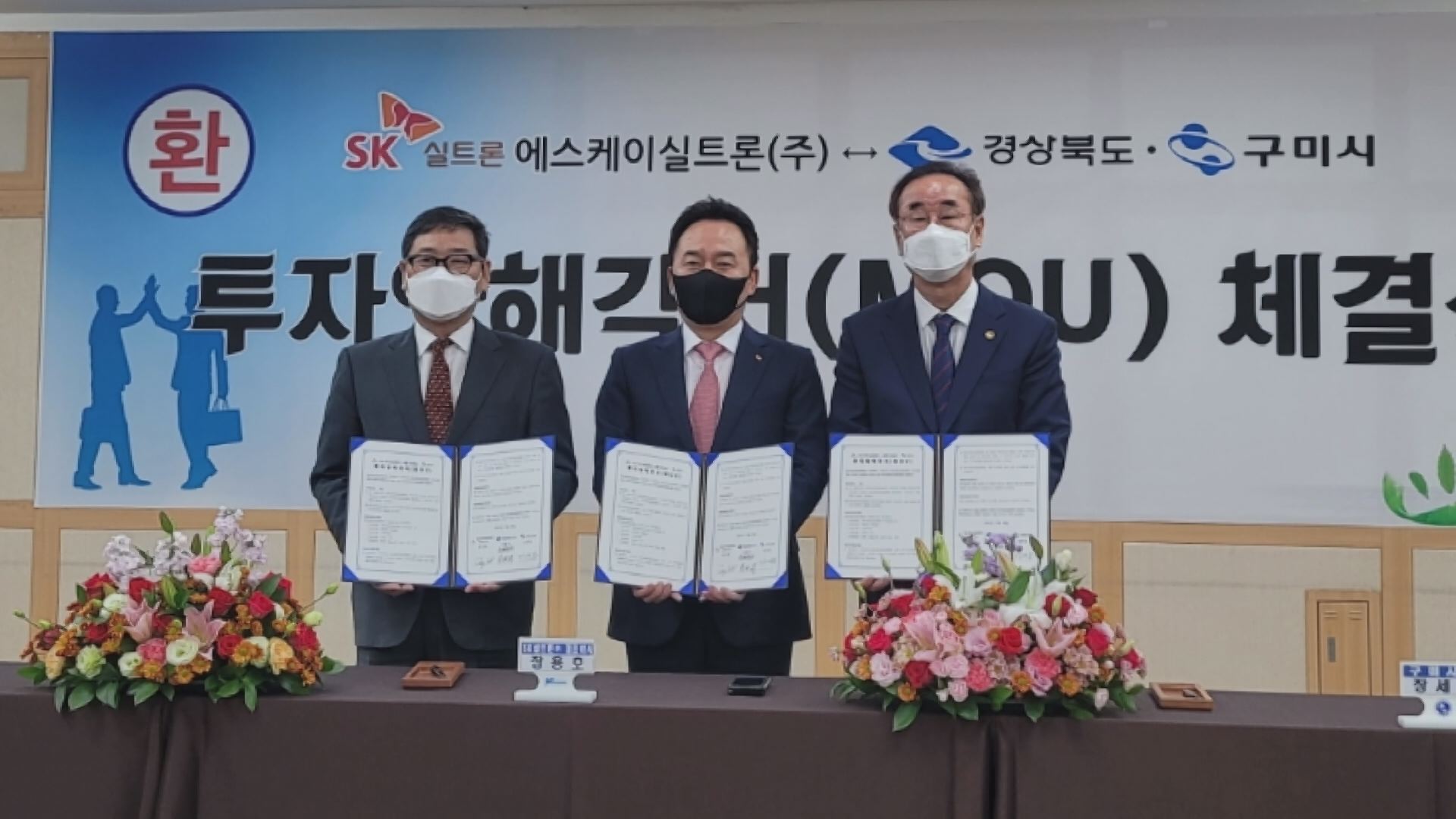 구미에 본사를 둔 SK실트론이 반도체 웨이퍼 생산공장을 증설합니다.경상북도와 구미시는 어제 구미시청에서 SK실트론과 이런 내용을 담은 투자양해각서를 체결했습니다.협약에 따라 SK실트론은 2024년까지 천900억 원을 투자해 구미2공장에 전력반도체 핵심 소재인 '실리콘 카바이드' 웨이퍼 생산공장을 증설합니다.이번 ...