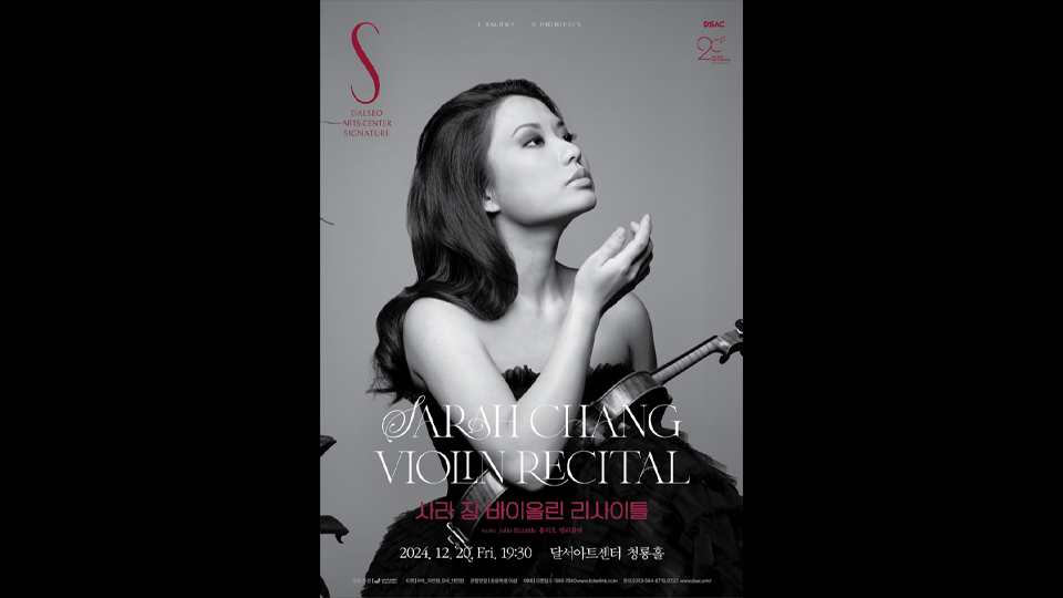 바이올리니스트 사라 장이 대구에서 단독 리사이틀을 12월 20일 저녁 7시 30분 대구 달서아트센터 청룡홀에서 엽니다. 사라 장은 이번 공연에서 브람스와 프로코피예프의 작품을 주로 연주합니다. 브람스의 초기작인 소나텐사츠와 소나타 3번, 그리고 프로코피예프 소나타 2번을 피아니스트 훌리오 엘리잘데와 함께 공연합...