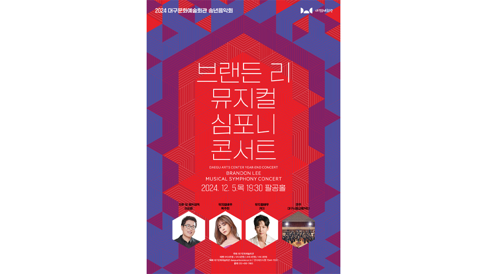 2024 대구문예회관 송년 음악회 '브랜든 리 뮤지컬 심포니 콘서트', 12월 5일에 열려