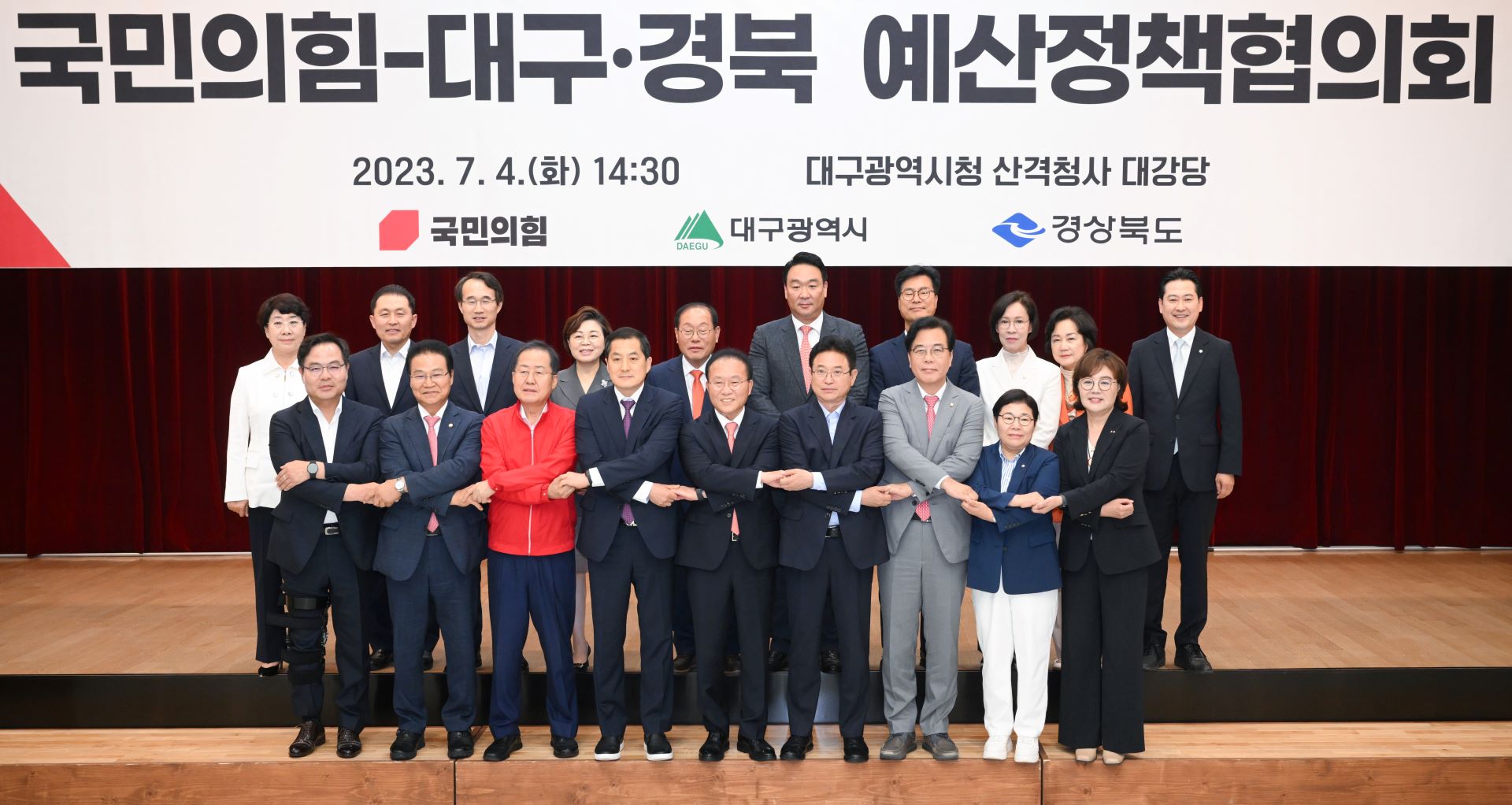 대구시와 경상북도, 국민의힘 지도부가 대구·경북 현안과 2023년도 국비 지원에 관해 논의하는 '대구경북 예산정책협의회'가 7월 4일 대구시 산격청사에서 열렸습니다. 홍준표 대구시장과 이철우 경북도지사를 비롯해 윤재옥 국민의힘 원내대표, 박대출 정책위의장, 송언석 예결위 간사, 정희용 원내대표 비서실장, 김용판 ...