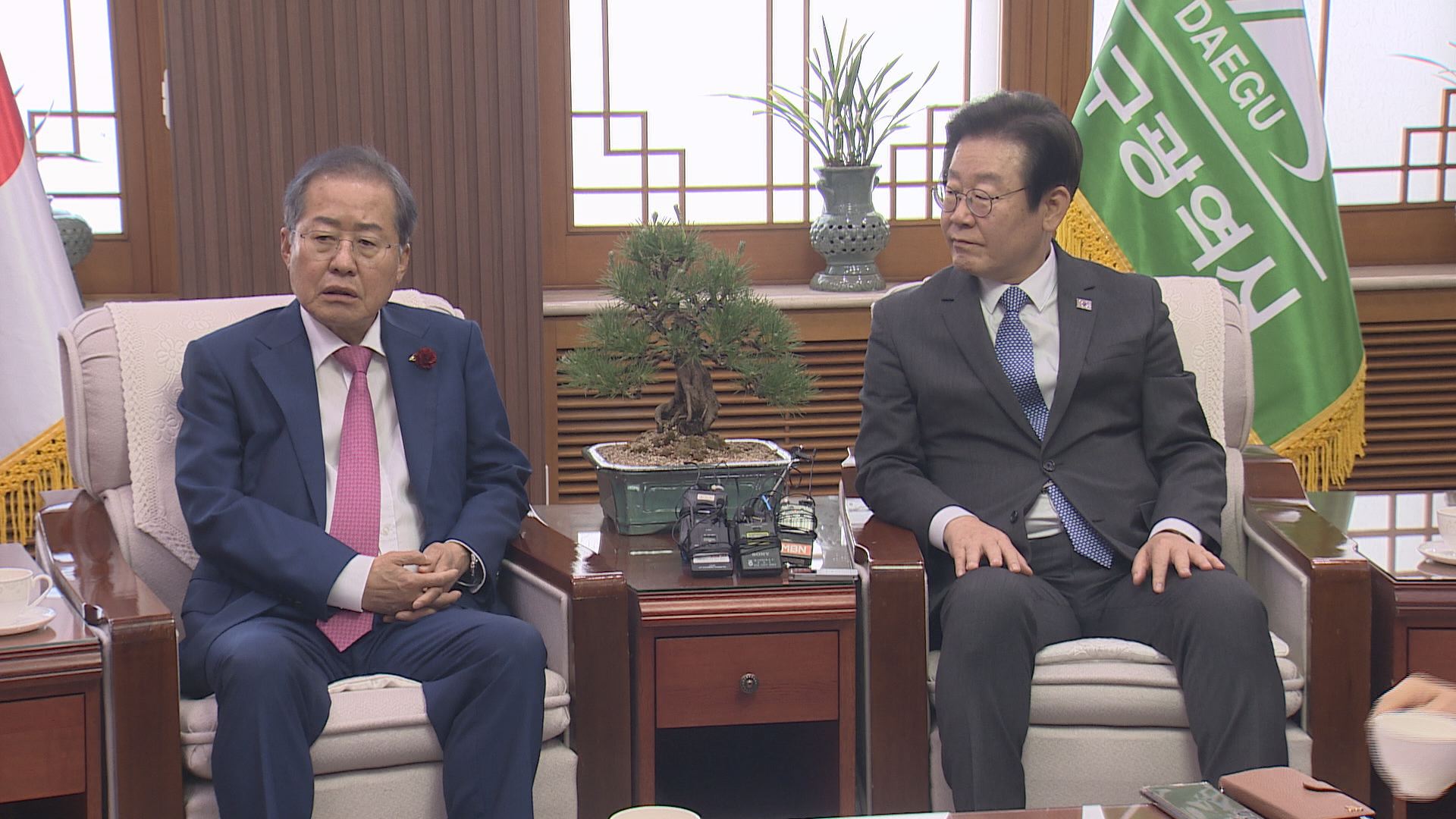 홍준표 대구시장이 5월 10일 대구를 찾은 이재명 더불어민주당 대표에게 "국민의힘 대표가 옹졸하다"고 말하면서 국민의힘 내부에서 또 설전이 벌어지고 있습니다. 홍 시장은 이재명 대표와 만난 자리에서 "윤석열 정권이 대부분 정치를 잘 모르는 사람들이 대통령실에 있다"며 "거대 야당인 민주당이 도와줘야 나라가 안정...