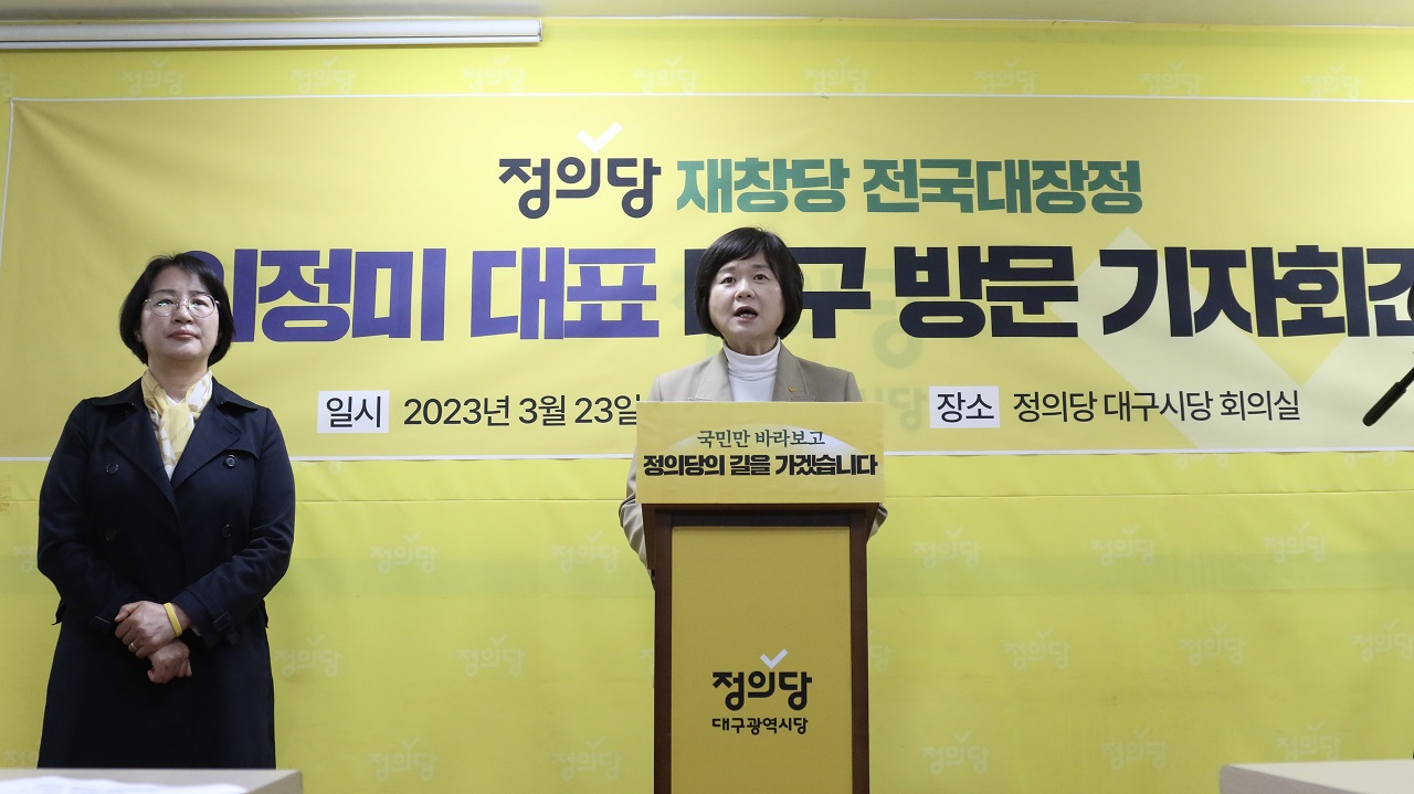 정의당이 지난해 대선과 지방선거 실패 이후 쇄신과 도약에 나선 가운데 이정미 대표가 3월 23일 낮 대구를 방문합니다.이 대표는 3월 23일 낮 1시 대구시당에서 기자회견을 통해 정의당 혁신 재창당의 비전과 계획을 비롯해 윤석열 정부 국정에 대한 정의당의 대응 방침, 대구지역 현안에 대한 입장을 밝힐 예정입니다.이...