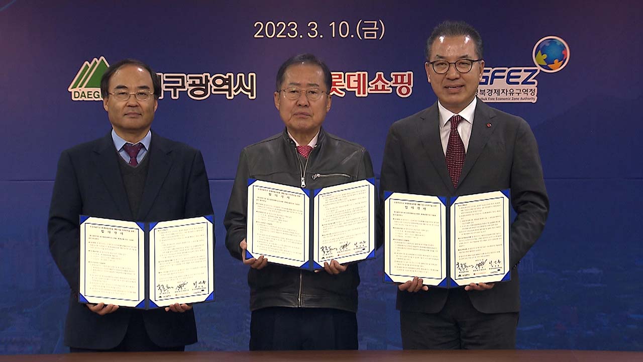 보수의 텃밭인 대구에서 민주당이 홍준표 대구시장을 향해 "잘하셨습니다"라고 칭찬하고 나서 그 배경에 관심이 쏠리고 있습니다.민주당 대구시당은 최근 논평을 통해 "대구 롯데몰, 신속한 해결을 환영한다"고 밝혔습니다.배경은 이렇습니다.지난 2014년 말 롯데는 대형 쇼핑몰을 짓겠다며 대구로부터 7만 7천㎡ 규모의 땅...