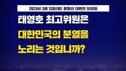 더불어민주당은 태영호 국민의힘 최고위원이 자신의 사회관계망서비스(SNS)에 "JM'S 민주당"이라는 글을 올린 것을 두고 "금도를 벗어난 말장난"이라며 강하게 반발했습니다.황명선 민주당 대변인은 3월 13일 국회 소통관 브리핑을 통해 "태영호 국민의힘 최고위원이 민주당과 이재명 대표의 명예를 훼손했다"며 "성 착취 ...