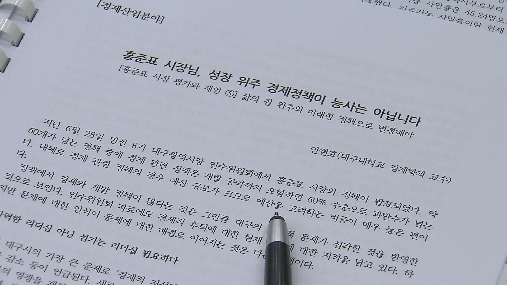◀앵커▶홍준표 대구시장이 취임한 지 두 달이 지났습니다.지역의 경제와 산업 각 분야에서 많은 변화를 추진하고 있습니다.학계와 시민단체들이 그동안의 시정과 의정 방향에 대한 토론회를 열었는데, 걱정의 쓴소리가 쏟아졌습니다.취재기자와 관련 소식 살펴보겠습니다. 김철우 기자, 시장 한 명 바뀌면서 대구시정에 많은...