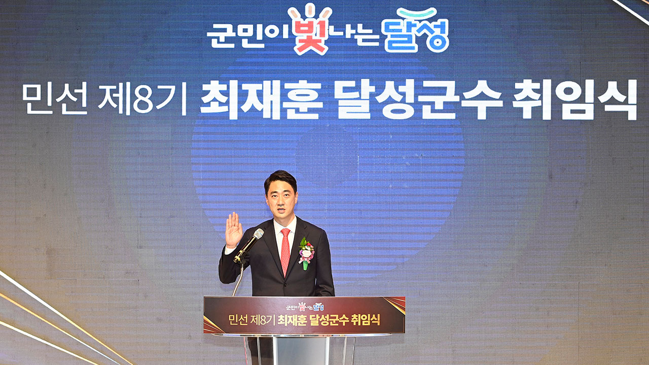 ◀앵커▶기초자치단체도 7월 1일부터 민선 8기 첫 발을 내디뎠습니다. 대구는 단체장 대부분이 재선과 3선에 성공해 큰 변화가 없지만 달성군과 동구는 새 인물이 등장해 기대감이 높습니다.양관희 기자가 보도합니다.◀기자▶40대 초선인 최재훈 대구 달성군수가 취임식을 하고 업무를 시작했습니다.3선 임기 동안 관광과 문화...