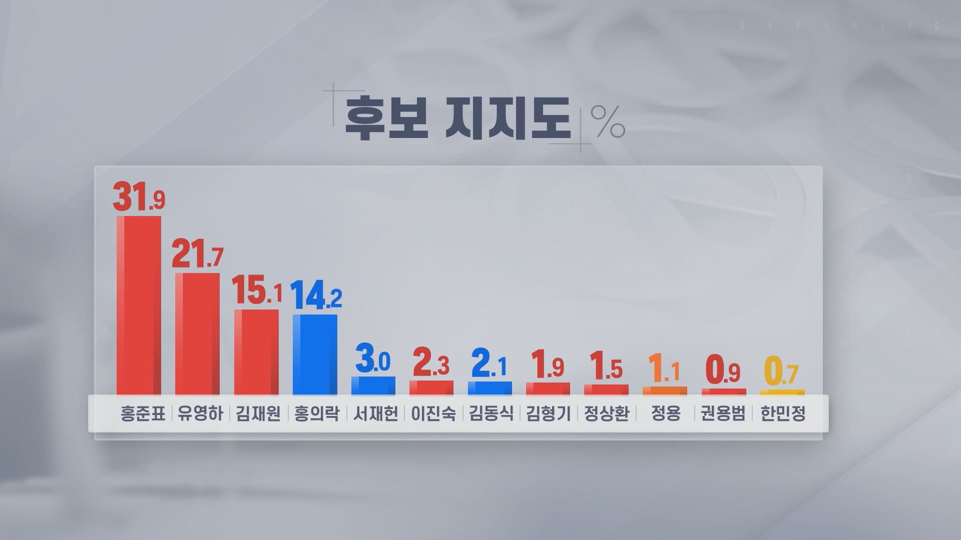 ◀앵커▶대구경북기자협회가 대구시민들에게 오는 지방선거에서 누가 대구시장이 됐으면 좋을지를 물었습니다.그 결과 국민의힘 홍준표 의원, 유영하 변호사, 김재원 전 최고위원, 그리고 민주당 홍의락 전 대구시 경제부시장 순으로 나타났습니다.여론조사 결과, 김철우 기자가 정리했습니다.◀기자▶|후보 지지도는 국민의힘 ...
