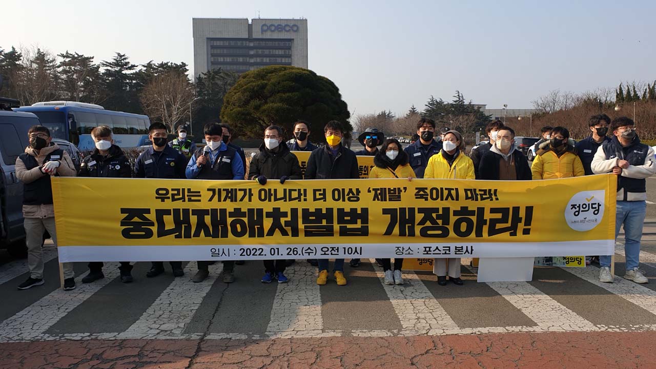 정의당 여영국 대표, 포스코 포항제철소 방문해 "중대재해처벌법 보완·강화해야"