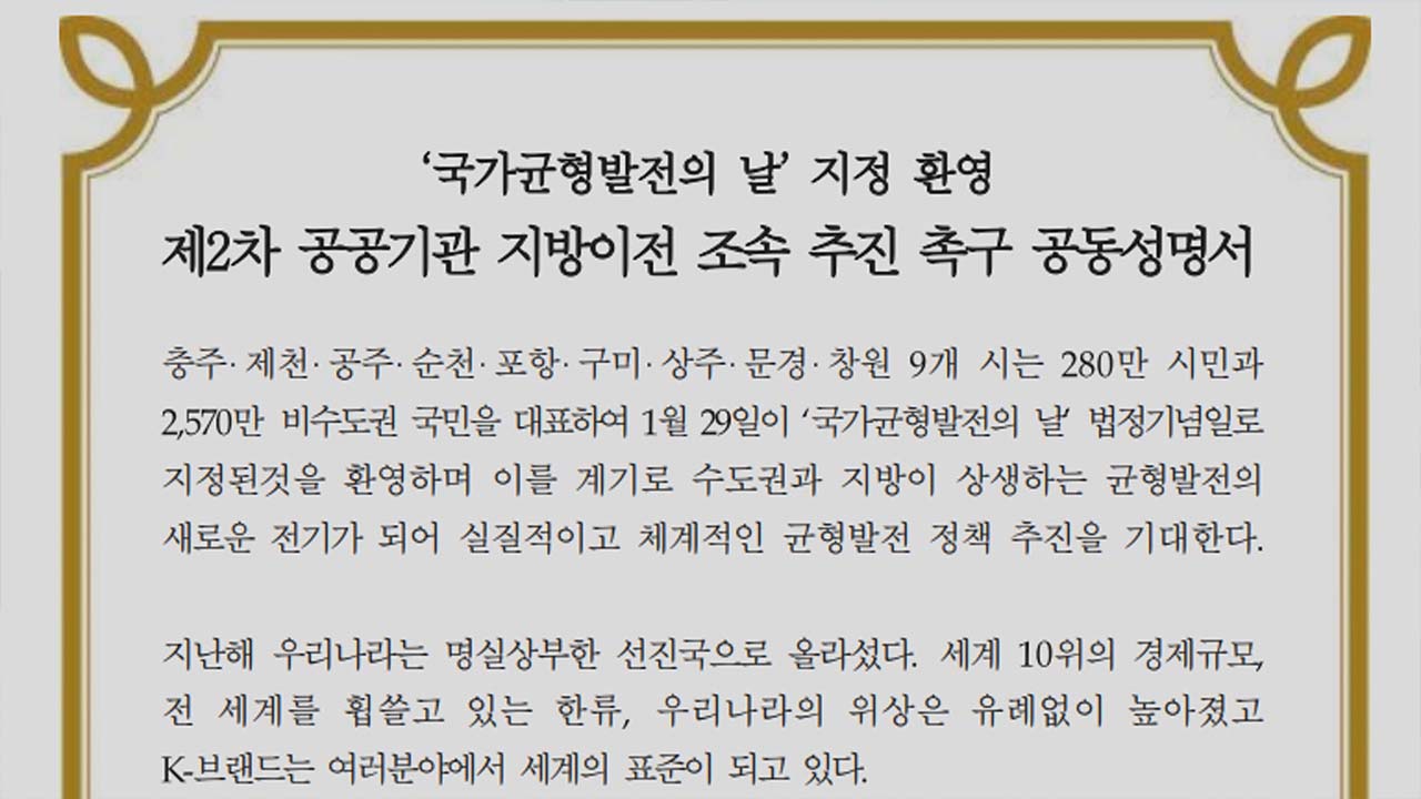 비수도권 9개 지자체 "2차 공공기관 이전 촉구"