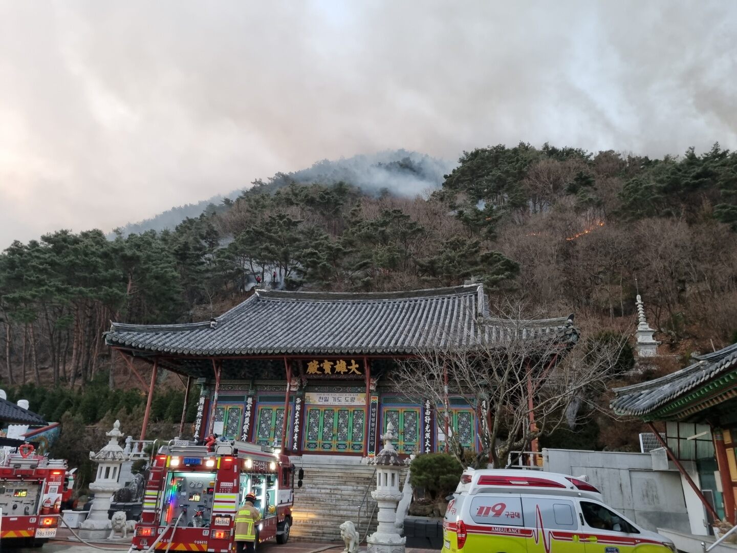 2월 27일 오후 9시쯤 대구시 달성군 가창면 용계리 가창댐 인근 광덕사 뒤에 있는 해발 600m 주암산에서 불이 났습니다.소방당국은 산불 1단계를 발령하고 헬기 11대와 차량 38대, 인력 166명을 투입해 14시간 만에 불을 껐습니다.이번 산불로 산림 4ha가 불에 탔고, 인명피해는 없었지만 주변 사찰과 민가로 불이 번지는 ...