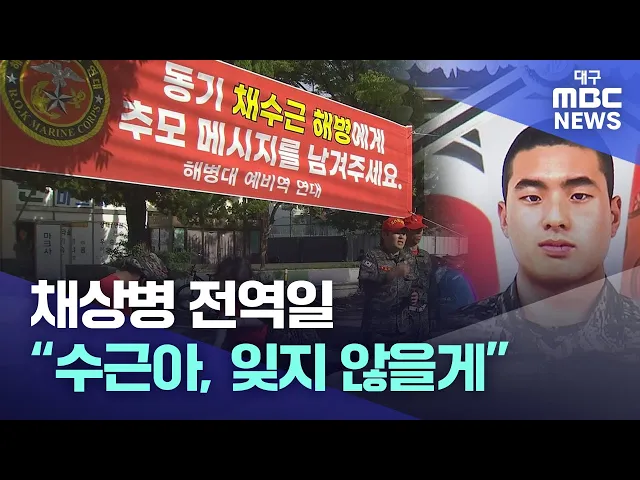 ◀앵커▶오늘(26일)은 해병대 채수근 상병이 살아있었다면 전역을 했을 날입니다.포항과 대전에선 해병대 예비역 단체가 준비한 채 상병 추모 행사가 열렸는데요.채 상병의 동기들이 참여하지 않아 행사는 제대로 열리지 못했지만 잊지 않겠다는 추모의 발길은 이어졌습니다.박성아 기자가 보도합니다. ◀기자▶경북 포항의 해...