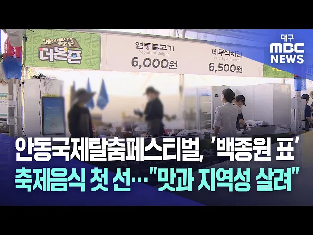 ◀앵커▶한국 최대 전통문화축제인 안동국제탈춤페스티벌이 개막했습니다.올해는 볼거리뿐만 아니라 먹거리도 풍성하게 준비됐습니다.백종원 대표의 더본 코리아가 직접 축제 메뉴 개발에 뛰어들었기 때문인데요.단순히 맛만 챙긴 게 아니라, 탈춤 노랫말에서 영감을 받은 음식들로 구성돼 축제의 정체성도 잘 살렸다는 평가...