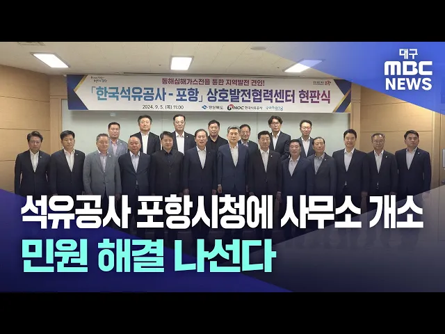 ◀앵커▶동해 심해 가스전을 개발 중인 한국석유공사가 9월 5일 포항시청 청사 안에 현장사무소를 열었습니다.사무소를 통해 포항 지역 지진 관련 우려나 어업권 보상 등 각종 민원 해결에 적극 나설 계획입니다.영일만항 활성화 방안도 함께 모색합니다. 이규설 기잡니다.◀기자▶포항 앞바다에서 석유와 가스를 시추할 예정인...