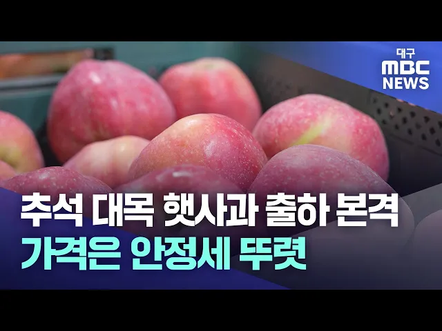 ◀앵커▶햇사과가 본격적으로 출하되고 있습니다.특히 올해는 이른 추석 대목과 겹쳐서 조생종 물량이 한꺼번에 쏟아지고 있는데요.작황이 그런대로 괜찮아서 작년에 한 개에 8~9천 원 하던 사과 가격은 올해 안정세가 뚜렷합니다.이정희 기자가 보도합니다.◀기자▶전국에서 가장 많은 사과 물량을 취급하는 안동 농산물 도매...