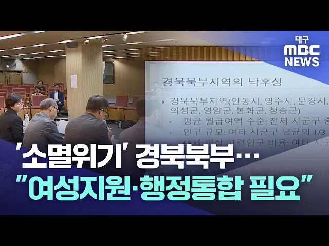 ◀앵커▶소멸 위기에 처한 경북 북부 지역의 발전 전략을 모색하는 세미나가 경북도청에서 열렸습니다.당장의 청년 유출을 막기 위해선 2~30대 여성을 위한 지원 정책을 강화하고, 장기적으로는 대구경북 행정통합을 통한 산업 경쟁력 극대화를 고민해야 한다는 진단이 나왔습니다.김경철 기자가 보도합니다.◀기자▶경북 북부 ...