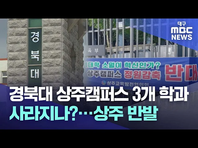 ◀앵커▶정부의 글로컬대학 지정을 추진 중인 경북대가 상주캠퍼스의 일부 학과를 통폐합하겠다는 안을 계획서에 담은 것으로 확인됐습니다.통폐합이 이뤄지면 상주캠퍼스의 모집 정원 100명가량이 사라지게 되는 건데, 상주시와 시민단체는 강하게 반발하고 있습니다.김경철 기자가 취재했습니다.◀기자▶세종시 교육부 청사 ...