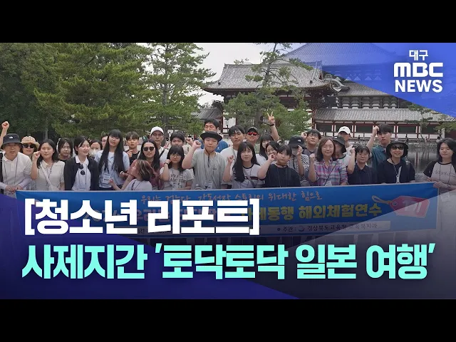 ◀앵커▶안동 MBC 청소년 리포트 시간입니다.교사와 학생이 함께 해외여행을 떠나는 프로그램이 경북에서 운영 중입니다.2024년은 일본을 찾았다고 하는데요, 안성환 MBC 청소년 기자가 전합니다.◀기자▶경상북도교육청은 도내 학교의 교사와 학생을 대상으로 사제 동행 해외 체험 연수 프로그램을 운영 중인데요.2024년에는 ...