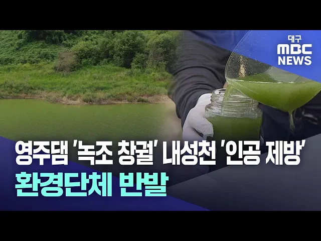 ◀앵커▶연일 불볕더위가 이어지면서 낙동강 녹조가 빠르게 확산되고 있습니다.특히 낙동강 중상류에 있는 영주댐의 녹조가 심각한데요.환경단체는 영주댐 녹조가 '조류 대발생' 수준이라며 대책 마련을 요구했고, 영주댐 하류 내성천에 추진 중인 제방과 준설 공사도 중단하라고 촉구했습니다.김경철 기자가 보도합니다. ◀기...