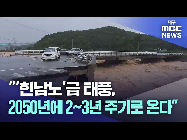 ◀앵커▶9호 태풍 '종다리'가 큰 피해 없이 소멸됐습니다만, 30년 뒤 2050년대에는 '힌남노'급 태풍이 2-3년 주기로 찾아올 것이라는 우려스러운 연구 결과가 나왔습니다.기후온난화로 8~9월 동중국해의 바닷물 온도가 태풍이 좋아하는 28도를 넘어섰기 때문입니다.김기영 기자가 보도합니다. ◀기자▶2년 전 9월 6일, 태풍 '힌...