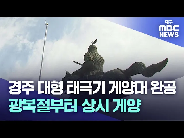 ◀앵커▶경주시가 갑작스레 추진해 논란을 빚은 황성공원 대형 태극기 게양대 설치가 완공됐습니다.경주시는 2024년 광복절부터 태극기를 상시 게양하기로 했는데요.시민단체는 애국심 고취와 관련이 없고 공원에 어울리지 않는 불필요한 시설물이라며 태극기 게양대 설치 장소 이전을 촉구했습니다.임재국 기자가 보도합니다...