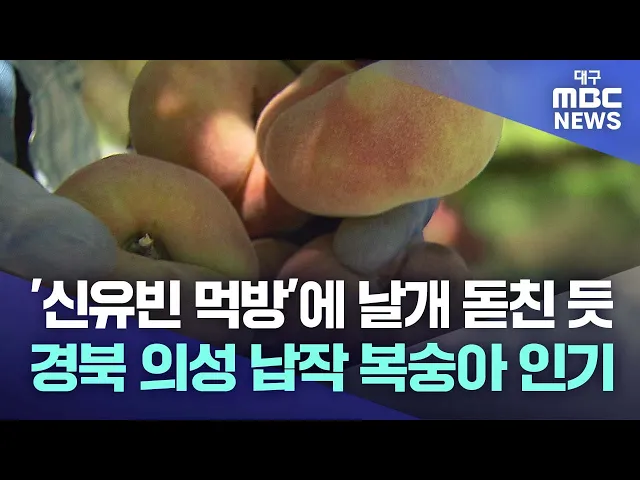 ◀앵커▶파리 올림픽에 출전한 탁구 국가대표팀 신유빈 선수가 경기 도중 틈틈이 간식을 챙겨 먹는 모습이 화제가 되고 있는데요.특히 신유빈 선수가 납작 복숭아를 맛있게 먹는 장면이 중계 화면에 잡히면서, 덩달아 경북 의성군에서 재배하는 납작 복숭아도 판매량이 늘고 있습니다.김서현 기자가 보도합니다.◀기자▶스무 살...