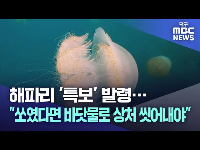 ◀앵커▶최근 동해안의 수온이 올라가면서 독성을 가진 초대형 해파리가 잇따라 출몰하고 있습니다.피서객들로 붐비고 있는 해수욕장에서는 해파리 쏘임 사고가 급증하고 있는데요, 해파리에 쏘였을 경우 어떻게 대처해야 하는지 이규설 기자가 보도합니다.◀기자▶한여름 따가운 햇살이 내리쬐는 포항의 한 유명 해수욕장.투명...