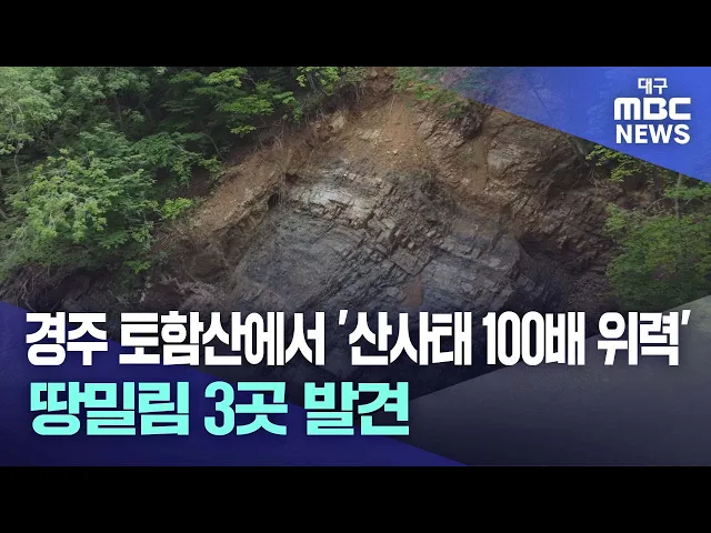 ◀앵커▶경주 토함산에서 지난 5월 산사태 현장 24곳이 처음 알려진 데 이어 49개소가 추가로 발견됐습니다.특히 산사태 100배 이상의 위력을 가진 땅밀림도 3곳에서 진행 중인 것으로 확인됐습니다.폭우가 오거나 지진이 발생하면 대형 산사태가 발생할 수 있어 추령재를 잇는 지방도와 문무대왕면 범곡리 등 마을에 선제적...