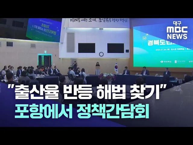 ◀앵커▶저출산고령사회위원회는 대통령이 위원장을 맡은 직속 기구로, 정부가 추진하는 저출산 관련 정책을 총괄하는 조직입니다.저출산고령사회위원회가 주관하는 정책간담회가 포항에서 열렸습니다.저출생 문제에 대한 범국가적 대응체계를 구축하고 지역에 맞는 해법을 찾기 위해섭니다.이규설 기잡니다.◀기자▶저출산고령...