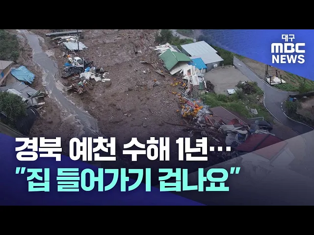 ◀앵커▶유례없는 폭우로 경북 북부 곳곳이 수해를 입은 지 1년이 다 돼갑니다.복구는 더딘데, 장마가 본격적으로 시작되면서 주민들은 불안감을 감추지 못하고 있습니다.2023년 인명 피해가 가장 컸던 예천 백석리 마을을 이도은 기자가 다시 찾았습니다.◀기자▶전체 16가구 가운데 3가구, 주민 5명이 숨지고 여섯 집이 통째...