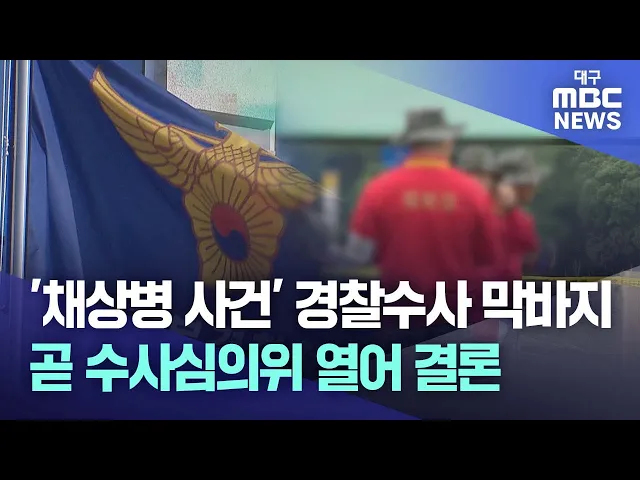 ◀앵커▶지난해 7월 예천 실종자 수색 도중 순직한 채 상병의 사망 원인을 규명하기 위한 경찰 수사가 막바지에 접어든 것으로 보입니다.경북경찰청은 조만간 수사심의위원회를 개최한 뒤 최종 결론을 내릴 방침입니다.김서현 기자가 보도합니다.◀기자▶경북경찰청 형사기동대가 전담해 온 채 상병 사망 원인 수사와 과실치사...