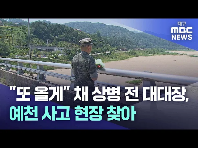 ◀앵커▶2023년 예천 폭우 실종자를 수색하다 순직한 고 채 상병의 소속 부대 대대장이 6월 14일 예천 내성천 사고 현장을 방문해 참배했습니다.이 대대장은 채 상병 순직사건 책임자로 경북경찰청의 수사를 받고 있습니다.임성근 전 사단장이 무리한 수색 지시를 한 순직사건의 주요 책임자라고 주장했습니다.김서현 기자입...