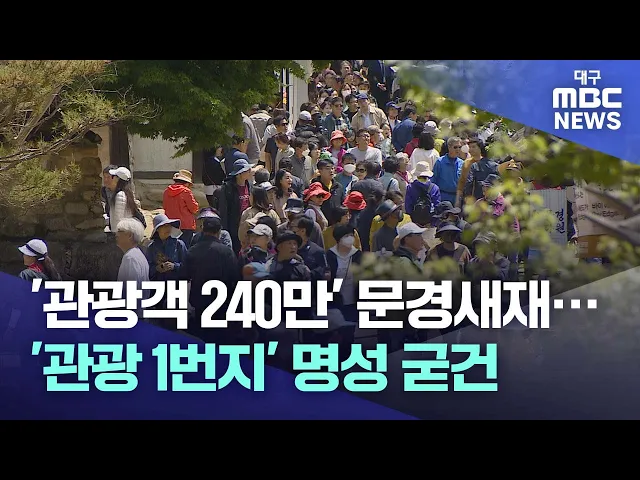 ◀앵커▶이렇게 경북 북부지역의 관광이 부진한 가운데에도, 문경새재만큼은 경북 관광 1번지의 명성을 굳건히 지키고 있습니다.2023년에만 무려 240만 명 넘는 관광객이 다녀갔는데요.문경시는 2024년 문경새재 케이블카 조성에 나서는 등 관광도시로의 새 도약을 준비 중입니다.김경철 기자가 보도합니다.◀기자▶30도가 넘는...