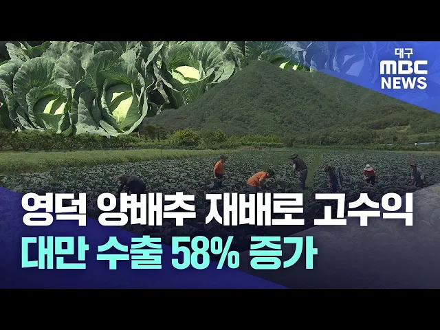◀앵커▶경북 영덕지역에서 2023년부터 양배추를 대규모로 재배하면서 대만 수출 물량도 1년 만에 58% 증가했습니다.국내 양배추 유통단가에 비해 수출 단가도 10~20% 높아 농가 소득에 큰 보탬이 되고 있습니다. 김형일 기자가 보도합니다.◀기자▶경북 영덕군 달산면 양배추 재배 농가의 봄 수확 작업이 한창 이뤄지고 있습니...
