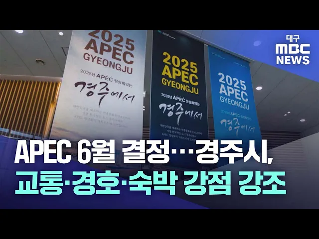 ◀앵커▶APEC, 아시아태평양 경제협력체 정상회의 개최 도시가 6월 중순에 결정됩니다.경주와 인천, 제주가 유치 신청을 했고 6월 중순 최종 결정을 앞두고 막바지 경쟁이 치열합니다.경주시는 교통과 숙박, 경호 안전 등의 강점을 부각해 정상회의 유치에 총력전을 펴고 있습니다.임재국 기자가 보도합니다.◀기자▶2025년 11...