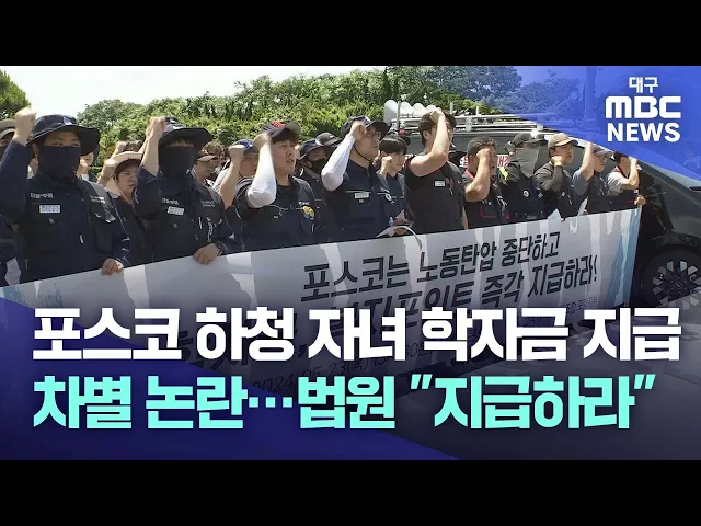 ◀앵커▶지난 2021년 포스코를 상대로 정규직 지위를 인정해달라는 소송을 제기한 하청 노동자들에게만 자녀 학자금 등 복지기금이 지급되지 않아 차별 논란이 있었습니다.노동부와 인권위의 시정 조치에도 불구하고 4년째 학자금이 지급되지 않고 있었는데요.법원이 노동자들의 손을 들어줬습니다.박성아 기자가 보도합니다....
