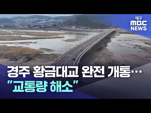 ◀앵커▶경주 용황지구와 현곡면을 연결하는 황금대교가 완전 개통됐습니다.두 지역은 경주 최대 주거지역으로, 경주시는 만성적인 교통난 해소와 함께 산업 물동량 확대로 지역 균형발전에 큰 도움이 될 것으로 기대하고 있습니다.임재국 기자가 보도합니다.◀기자▶경주의 주거 밀집 지역인 황성동과 현곡면을 잇는 황금대교....