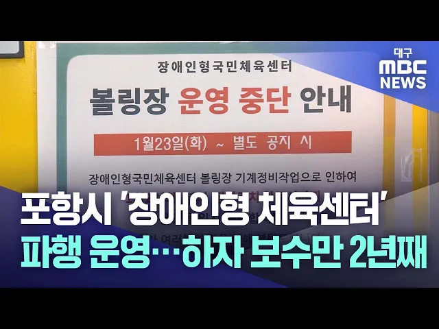 ◀앵커▶2023년 우여곡절 끝에 문을 연 포항시 장애인형 국민체육센터가 파행 운영을 되풀이하고 있습니다.하자 보수만 2년째 하다 보니 개관이 1년이나 미뤄지고 있는데요, 주요 시설인 볼링장은 수시로 고장 나 아예 문을 닫았습니다.장성훈 기잡니다.◀기자▶포항시가 190억 원을 들여 2023년 개관한 '장애인형 국민체육센터...