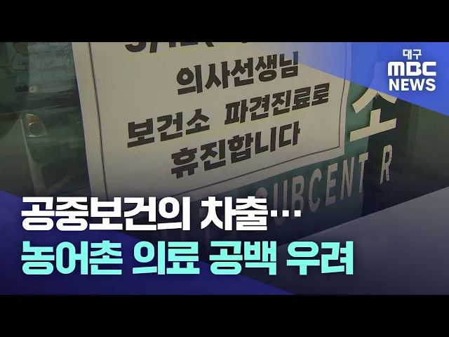 ◀앵커▶의료 대란 여파로 정부가 농어촌 지역에 있는 공중보건의를 이달 들어 3차례나 차출해 갔습니다.노령층이 많은 데다 가뜩이나 의료 여건이 열악한 농어촌 지역은 심각한 의료 공백으로 이어지지 않을까 걱정이 커지고 있습니다. 김형일 기자가 경북 동해안 지역 상황을 전해드립니다. ◀기자▶경북 영덕군 강구면에 있...