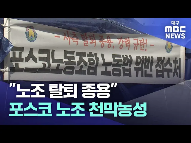 ◀앵커▶포스코 노조가 사측이 부당노동행위를 일삼고 있다며 현장 대응을 위한 천막 근무를 이어가고 있습니다.인사고과 등을 빌미로 노조 탈퇴를 강요받고 있다는 조합원 제보가 잇따르고 있다고 하는데요.회사 측은 부당노동행위는 없다고 밝히고 있지만, 노조는 접수된 사례들을 검토해 고용노동부에 고소할 계획입니다....