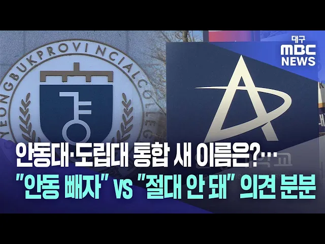 ◀앵커▶국립안동대와 경북도립대가 통합을 앞두고 새 학교 이름을 짓기 위한 여론 수렴이 한창입니다.포항공대를 '포스텍'으로 부르는 것처럼, 국립인문과학기술대, 줄여서 '휴스텍'으로 부르는 방안부터, 국립경국대학교 까지 3~4개 이름이 후보군으로 압축됐는데, 모두 '안동'이란 지역명이 빠진다는 게 특징입니다.이도은...