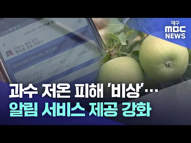 ◀앵커▶기후변화로 과일나무의 꽃 피는 시기가 빨라지면서 냉해 발생 우려가 커지고 있습니다.2024년도 예년보다 10일 이상 빠를 것으로 예상되고 있는데, 정부가 기상재해 알림 서비스를 2025년까지 전국 모든 시군으로 확대하기로 했습니다.김건엽 기자가 보도합니다.◀기자▶기후변화의 영향으로 2024년 봄 과일나무는 평년...