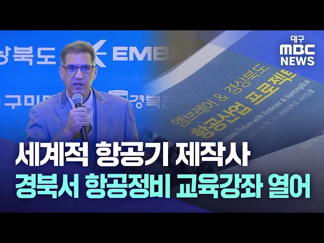 ◀앵커▶세계 3위의 브라질 항공기 제작사, 엠브레어가 구미에서 지역 대학생을 대상으로 항공 정비와 운항에 대한 교육을 진행 중입니다.대구경북신공항 개항에 맞춰 지역 안에서 항공산업 인재를 길러내려는 경상북도의 야심 찬 계획의 일환인데요, 특히 의성 지역에 예정된 항공 정비 산업 단지와 시너지 효과가 기대됩니...