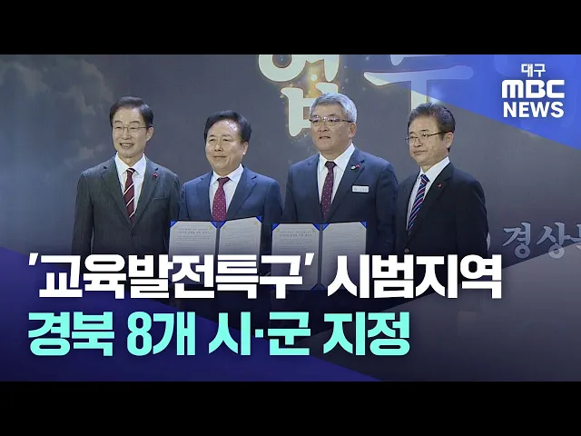 ◀앵커▶정부가 지역 균형발전을 이루기 위해 4대 특구 사업을 추진 중인데요.이 가운데 하나인 '교육 발전 특구' 사업 시범지역이 2월 28일 발표됐습니다.경북에서는 9개 시군이 신청해 울릉군을 제외한 8개 시군이 선정됐는데, 청년 유출을 막고 지역 소멸을 완화할 수 있을지 주목됩니다.김경철 기자가 보도합니다.◀기자▶...