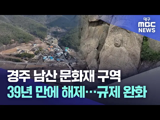 ◀앵커▶국립공원이자 유네스코 세계문화유산에 등재된 경주 남산의 문화재구역이 39년 만에 해제됩니다.해제되는 지역은 남산을 둘러싼 마을과 공공부지 등 37만 제곱미터로, 건축 등 각종 규제가 다소 완화됩니다.임재국 기자가 보도합니다.◀기자▶유네스코 세계유산으로 지정된 경주 남산 국립공원.수많은 불교 문화재가 산...