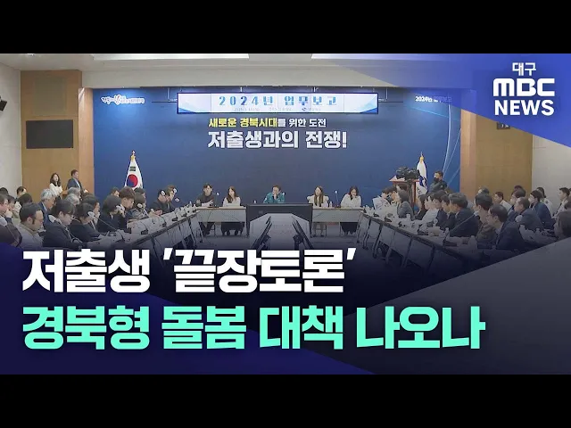 ◀앵커▶이런 추세라면 저출생, 고령화가 심각한 경북은 수도권보다 더 빠르게 인구 절벽에 부딪히게 될 텐데요.경상북도는 위기감을 느끼고 올해 '저출생과의 전쟁'을 선포하고, 부서별로 대책 발굴에 나서는 한편 시행을 위한 끝장토론을 벌이면서 저출생 해법 마련에 공을 들이고 있습니다.엄지원 기자가 보도합니다.◀기자...