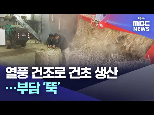 ◀앵커▶한우를 비롯한 축산농가는 말린 풀, 건초를 필수 사료로 사용하는데 대부분 수입에 의존하고 있습니다.열풍으로 건초를 만드는 기술이 확대 보급되면서 축산농가의 부담을 덜어주고 있습니다.김건엽 기자가 보도합니다.◀기자▶한우를 사육하는 농장입니다.되새김을 하기 때문에 반드시 볏짚이나 건초 같은 풀 사료를 ...