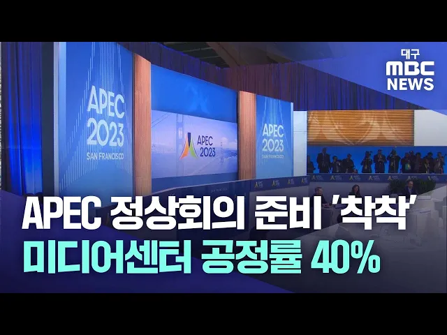 ◀앵커▶경주 APEC 정상회의가 4개월 앞으로 다가온 가운데 회의 준비가 순조롭게 이뤄지고 있습니다.APEC 미디어 센터는 40%의 공정률을 보이고 있고 정상급 국빈용 숙소 준비도 50%의 공정률을 나타내고 있습니다.김형일 기자가 보도합니다.◀기자▶경주 APEC 정상회의장인 화백컨벤션센터와 인접해 APEC 미디어 센터 공사가 ...